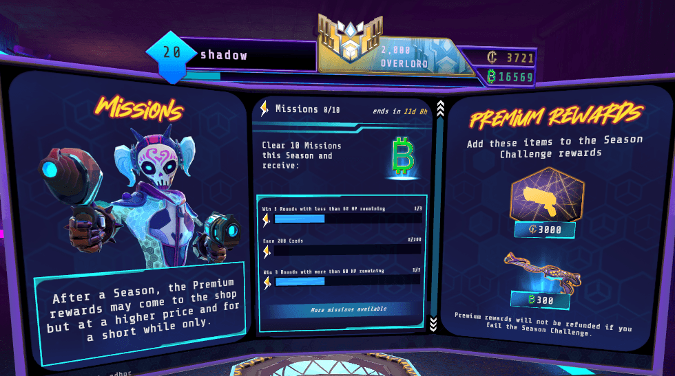 Here the missions UI is locked with an instruction to claim the rewards from the previous season’s missions. This will then unlock the next seasons missions instantly.