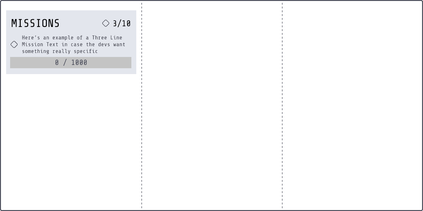 The first pane would be the overview of the missions system itself. This would be the timer of the missions feature and the description of how the system worked. The middle pane would be related to the information and progress of the tasks themselves, and the right pane would be only the reward information. Adding better information architecture would help players understand what the system actually required.