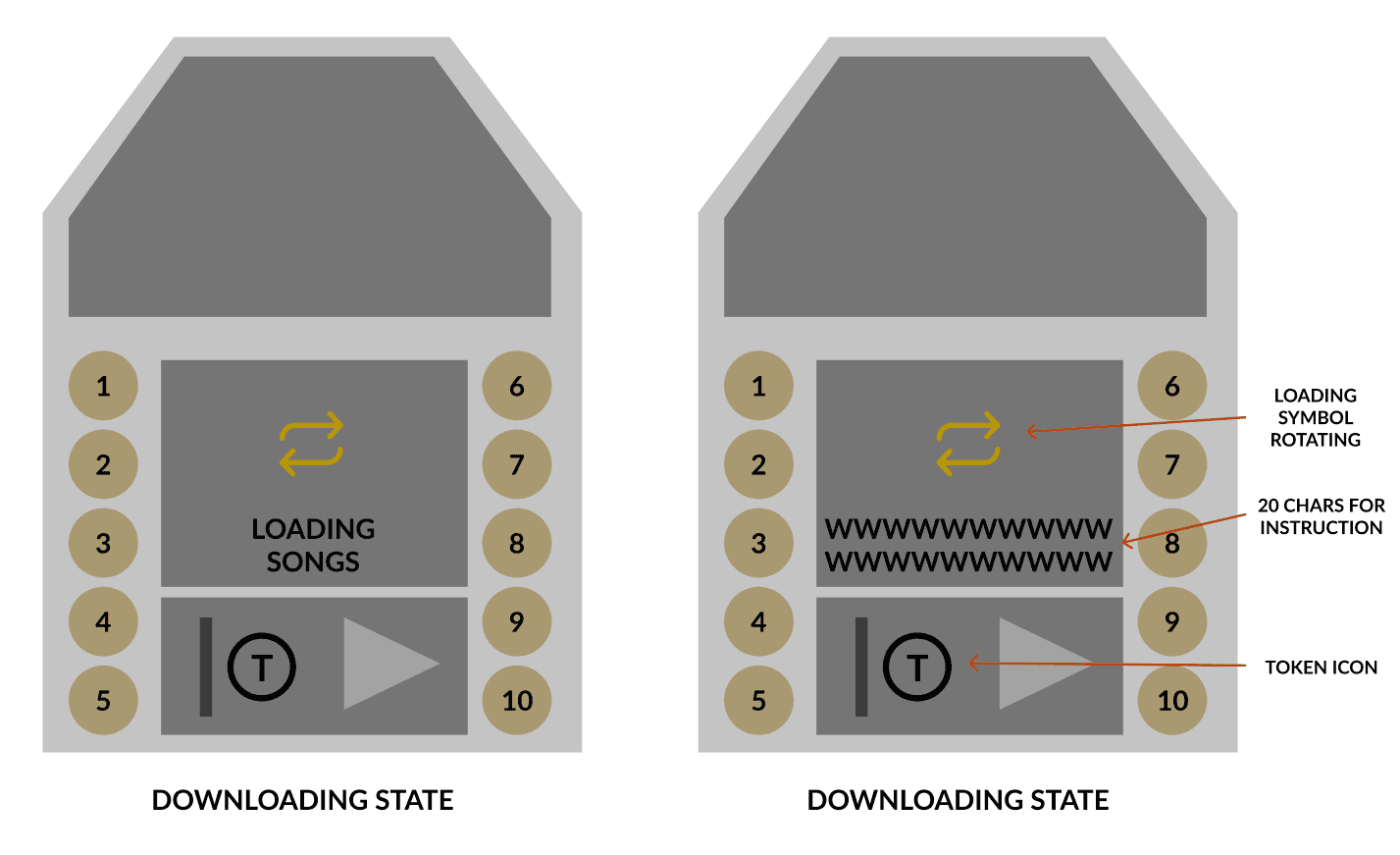 This state is upon joining a room, the jukebox downloads the tracks that can be played. We’ll show this state until the playlist is downloaded before switching to Default state.