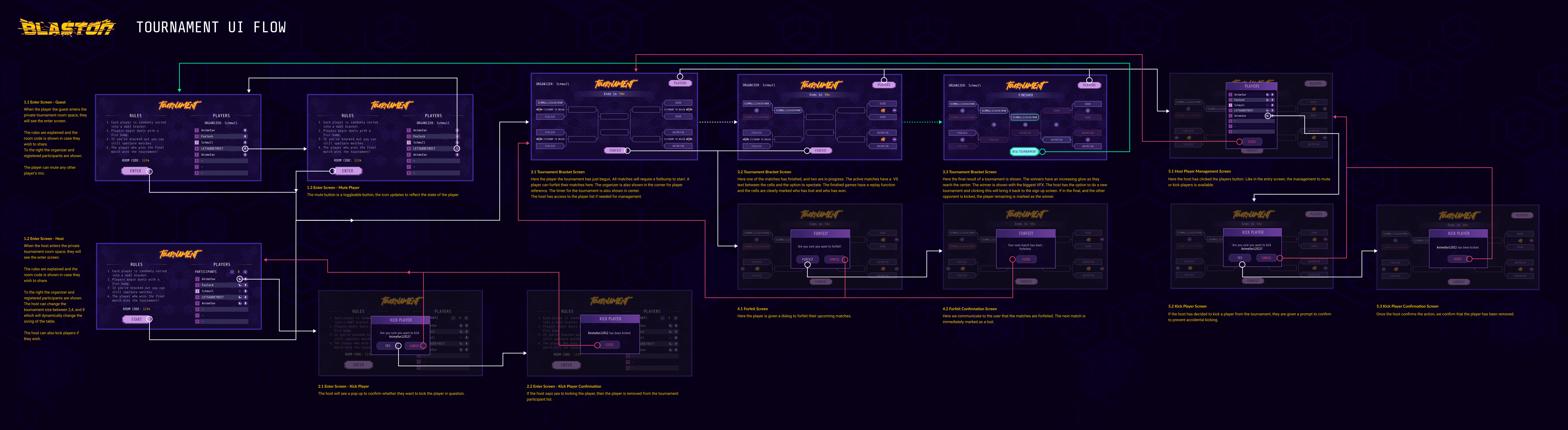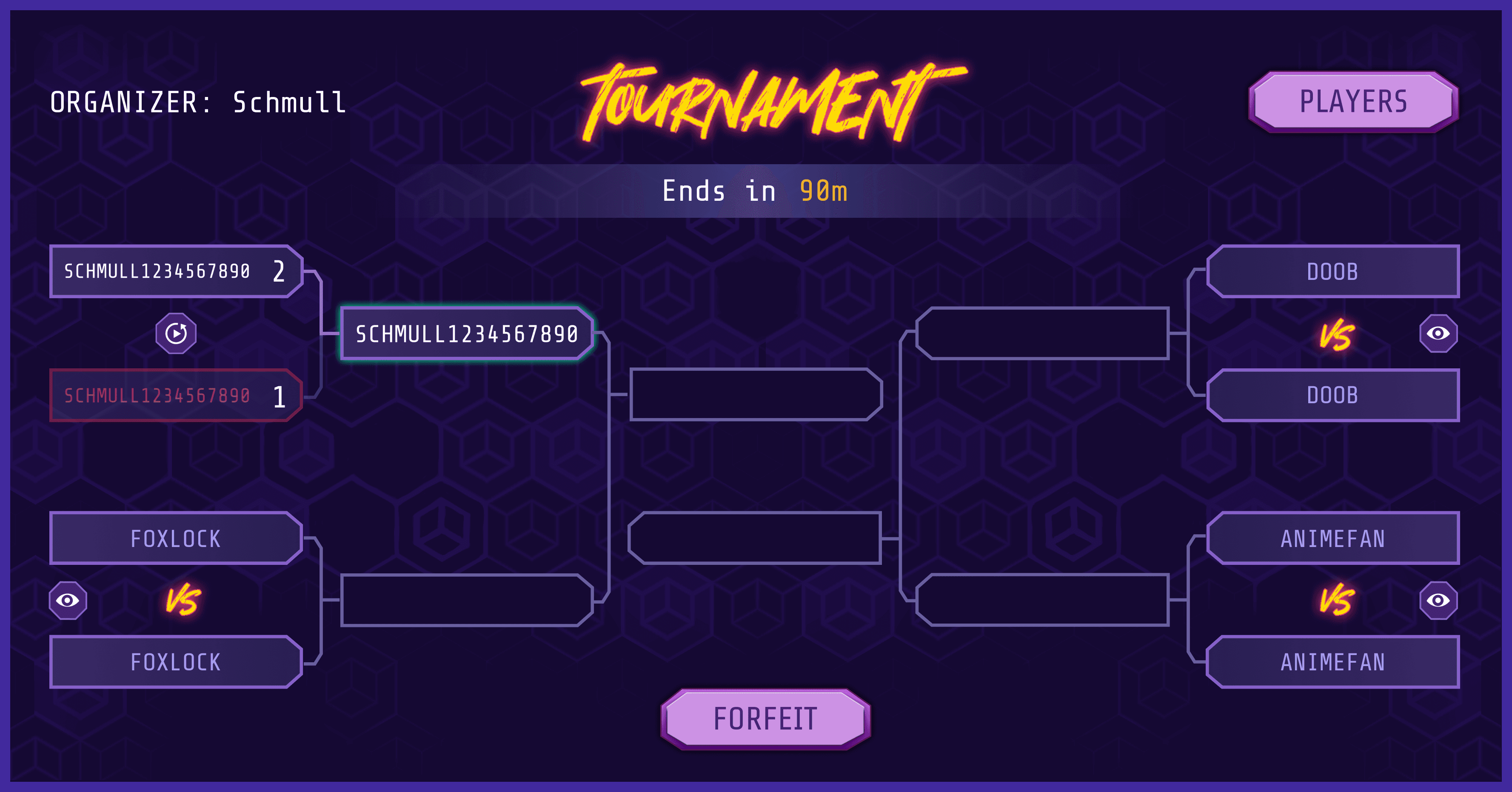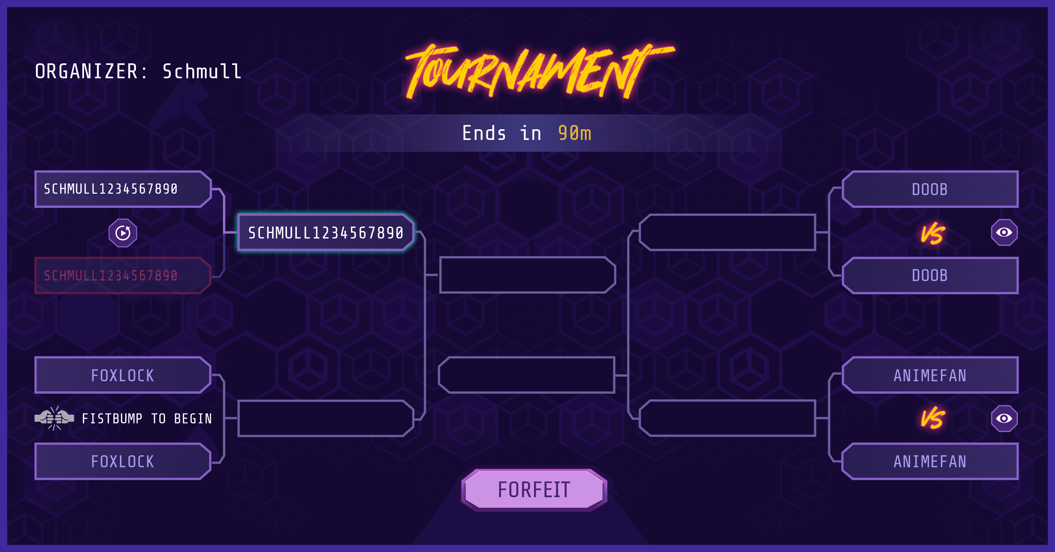 Depending on the amount of participants, then we move them into the relevant bracket column. Ongoing matches have a spectate button and matches that haven't begun are prompted to fist bump. That's how things are done in Blaston!