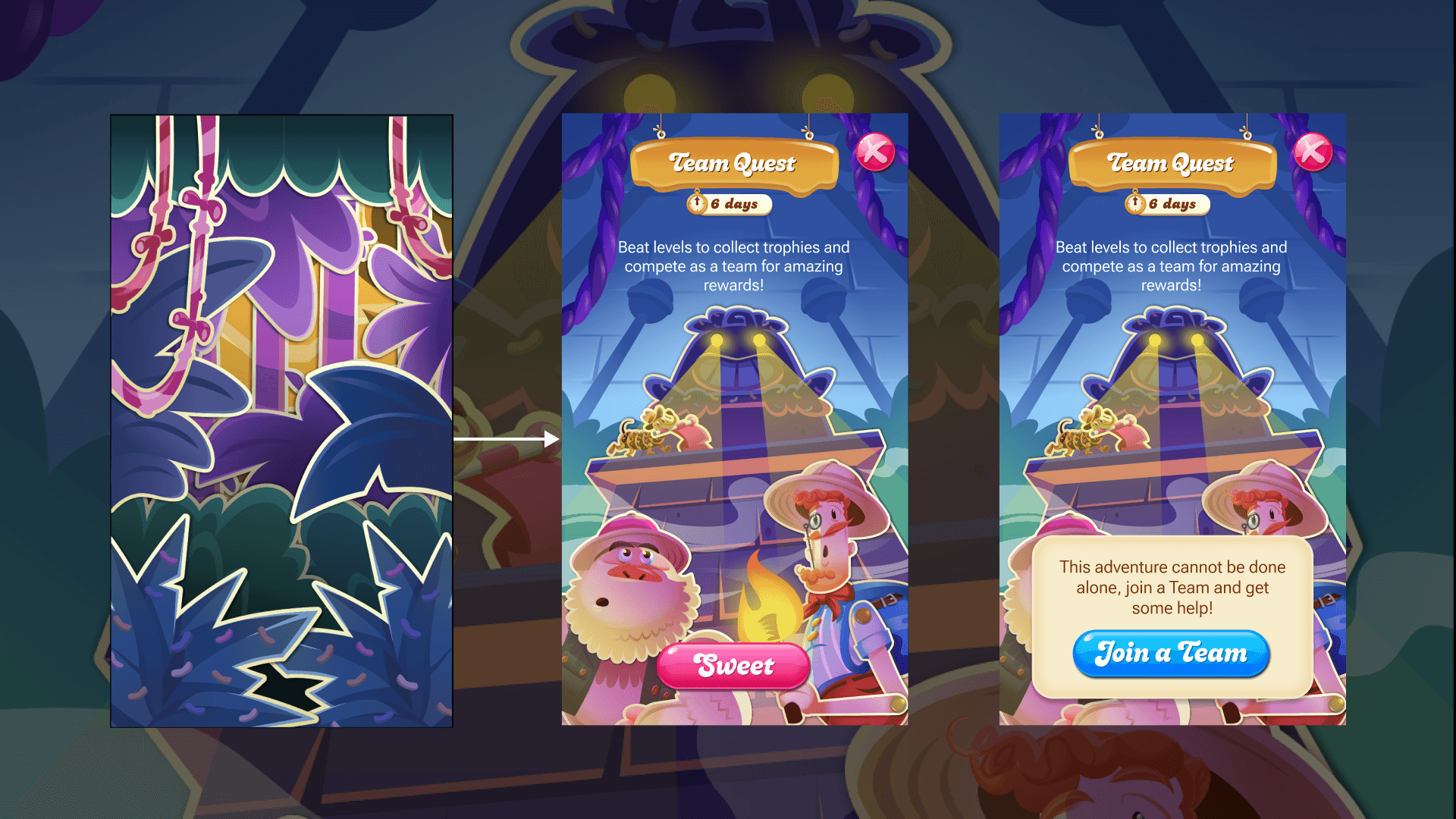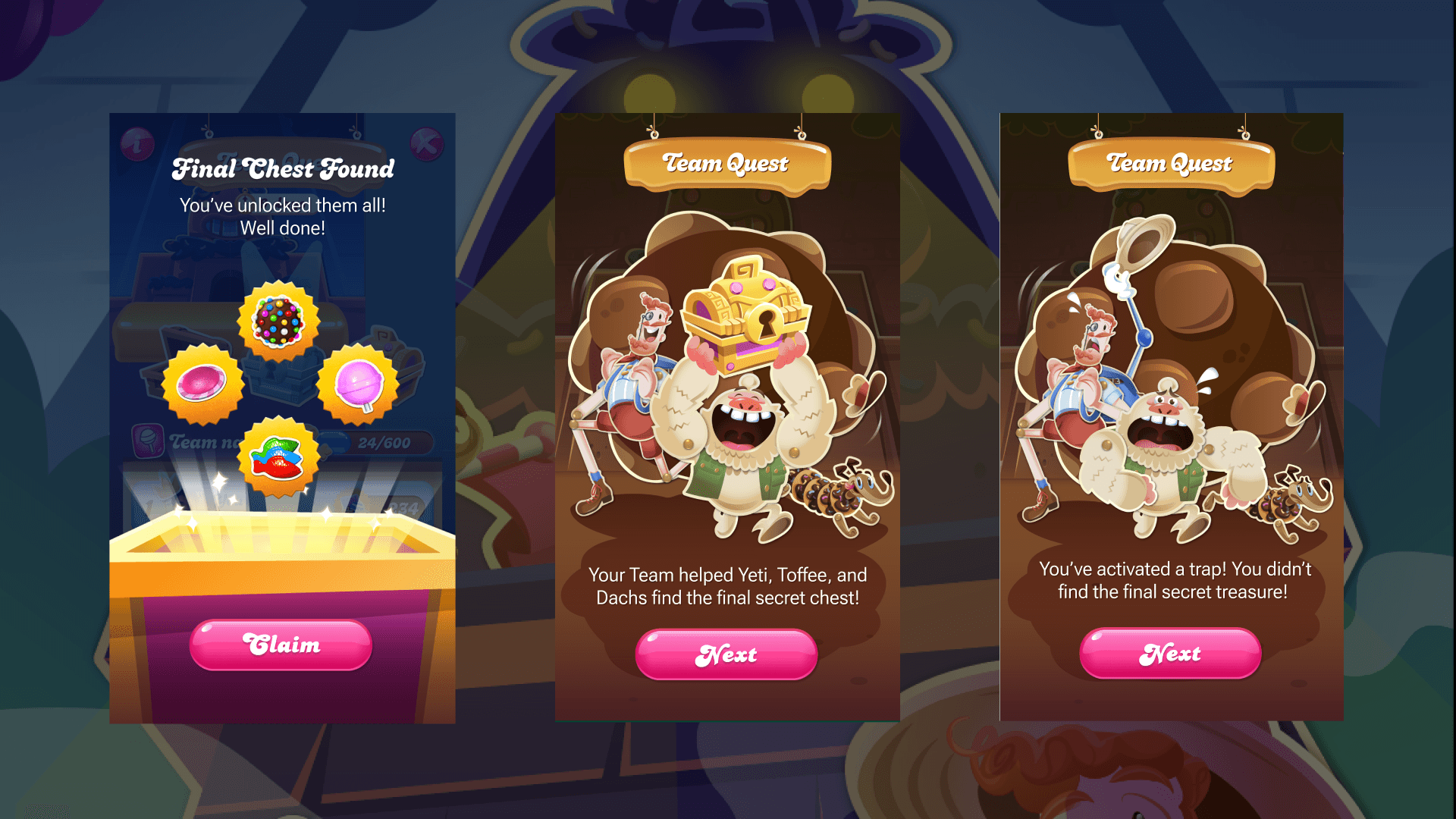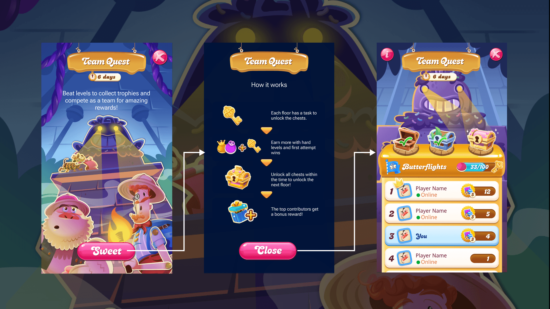 Team Quest is the first event for Candy Crush Teams. It features multiple milestones that require teamwork to unlock. It is set