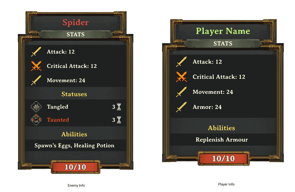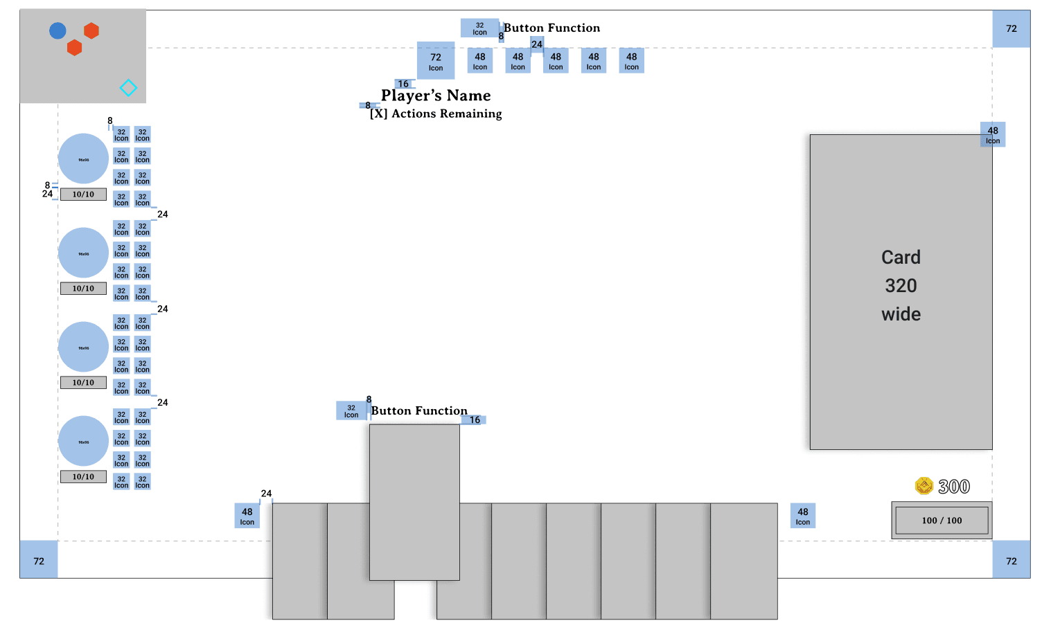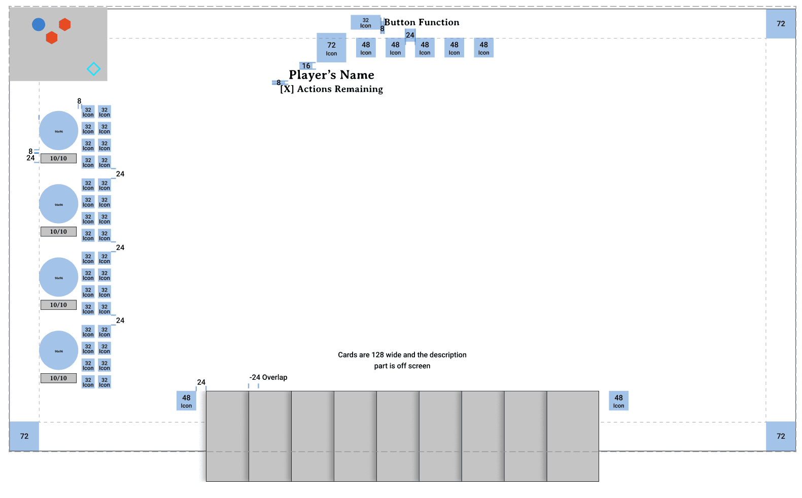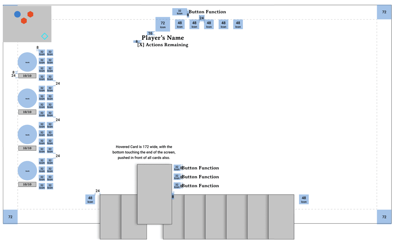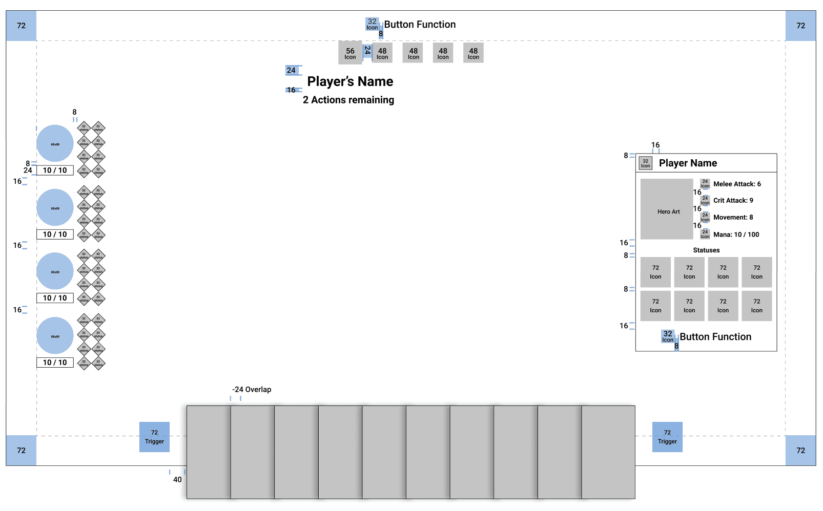 The items that worked well and remained as is was the card hand, mana meter, statuses and healthbars. This also worked with the new sidebar since the language could be added to the sides of the profile icons.