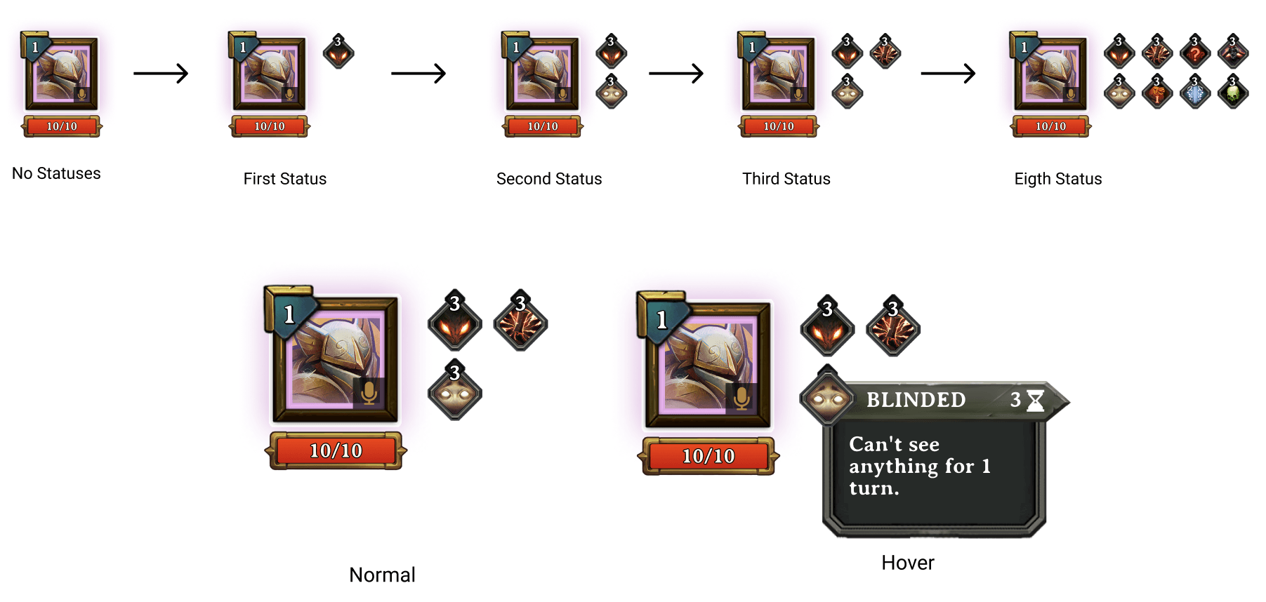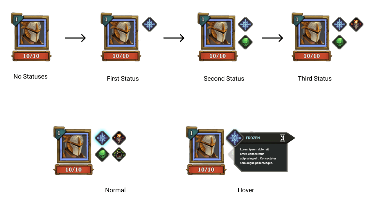 Players can get a lot of statuses and they're sometimes not very clear what they do so we had added a hover tooltip on all statuses so players could understand what they meant.