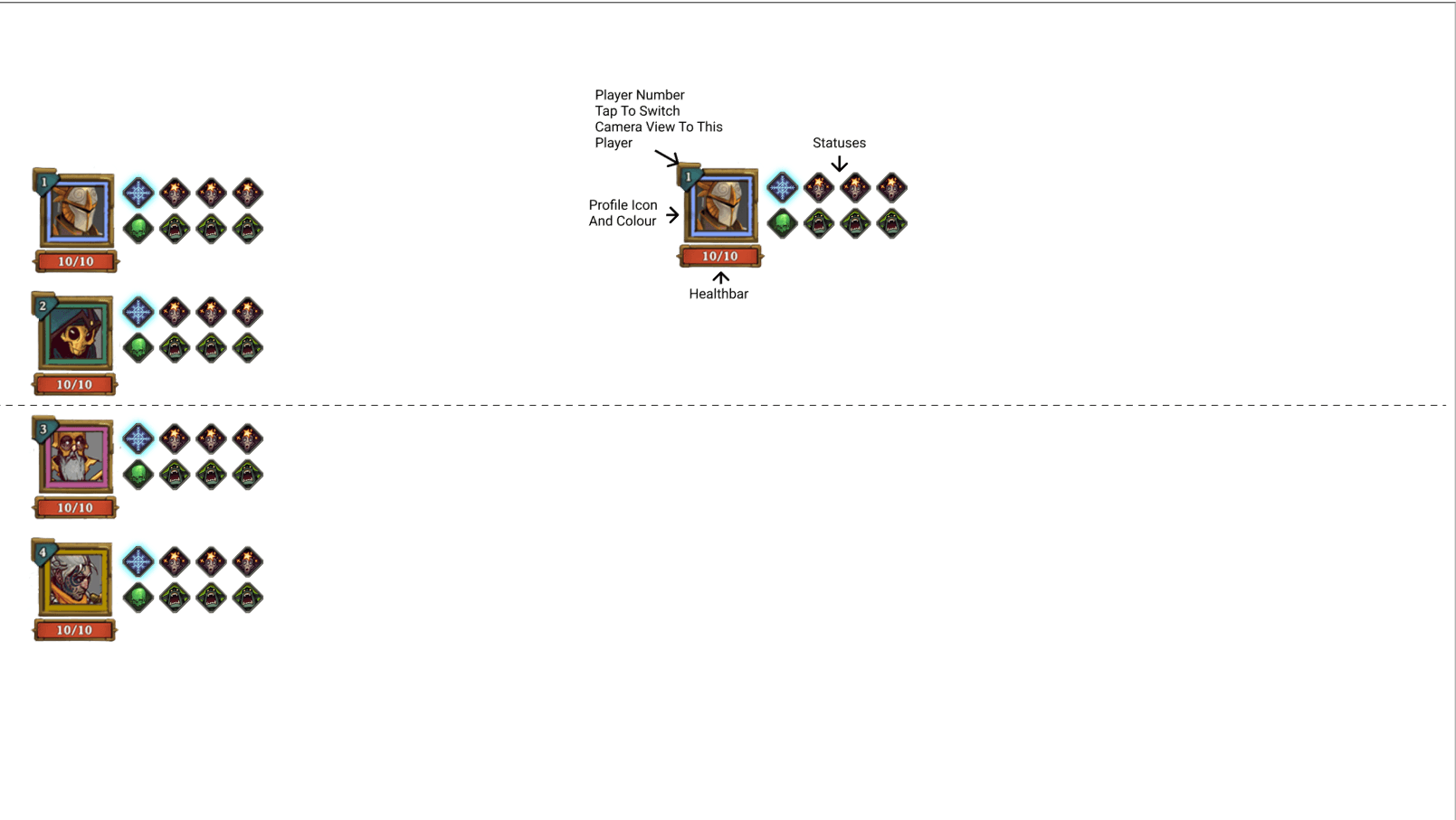 Similar to the VR version, each time a player gets a status, we add them to the right of the player’s icon. These fill up the column first before adding the next column of statuses.