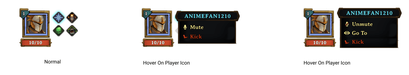 When a player hovers on another icon, we get a menu pop out to the right of the player’s icon.