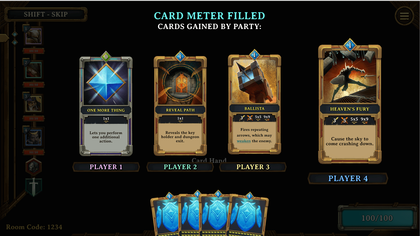 With the mana meter, we had to let players know that they got a new card. This was sometimes missed in the VR version so we had a chance to clarify greatly here. Not as much of an issue as we have the direct attention of the player always. We thought it'd be a great addition to show what all party members got !