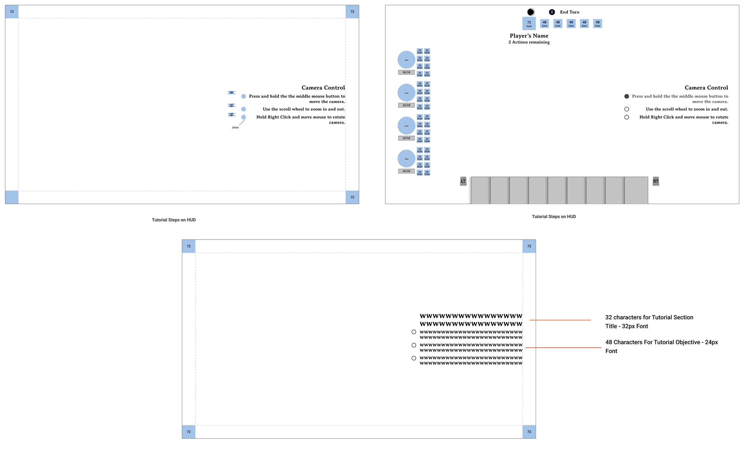 With the localization I had written for the English copy, and both final and temp art assets, we could make a slide-by-slide version of the intended experience with and without a controller. This would help with the implementation of the tutorial with the programmers on our team.