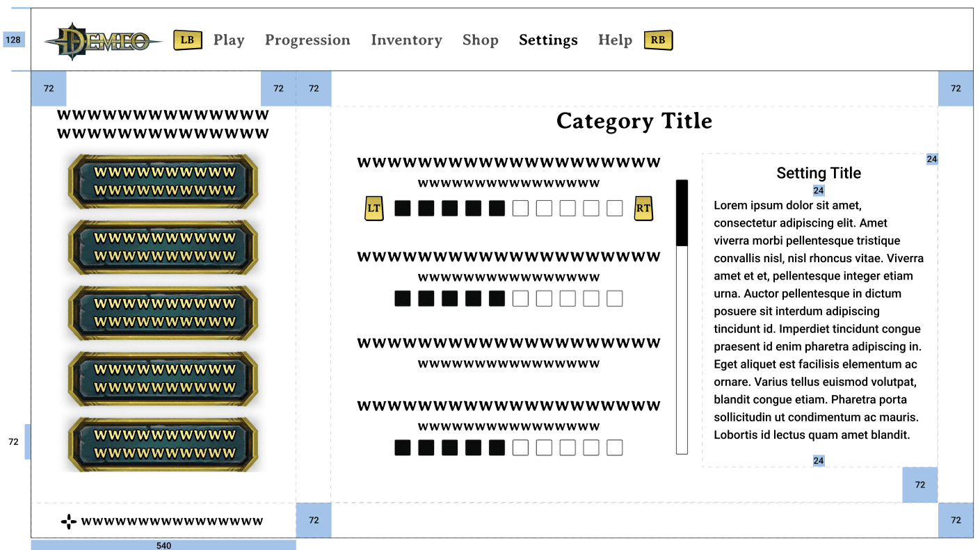 At this point, we had already decided on the top nav bar for the main menu UI so it was mostly exploring the content of the page.