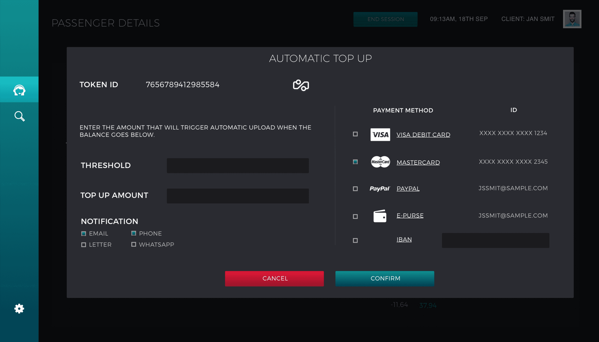 Here the functionality is extended to allow the user to select the payment method which will top up the balance.