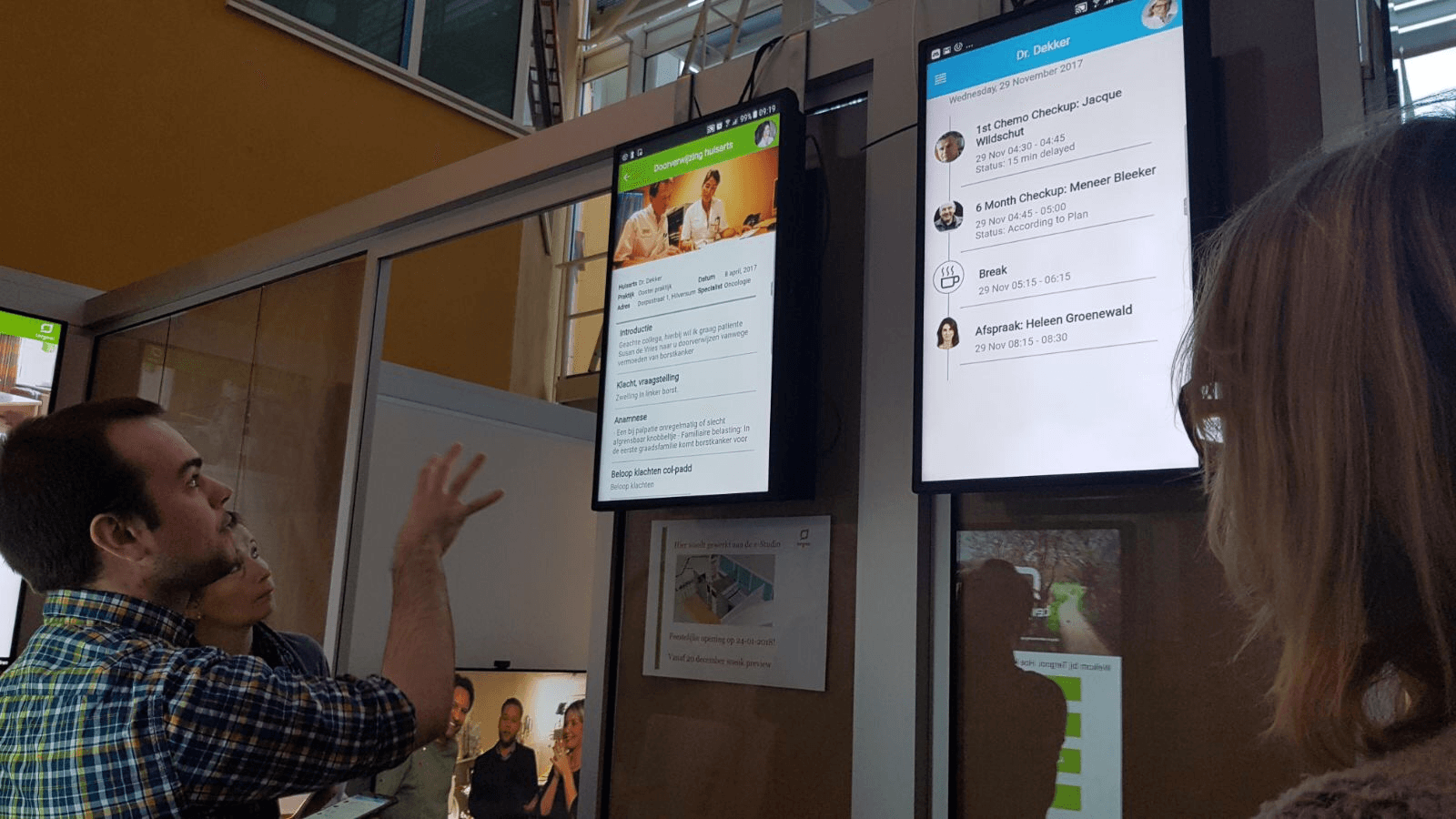 The premise of the E-Studio was for visitors / members of the public / staff of the hospital to select a patient and go through their journey at the hospital. There are multiple devices seen in the E-Studio, but the tour revolves around the two mobiles. One mobile phone is used by the tour guide who takes the role of the caregiver in the journey, the person coming on the tour gets the other phone and is put in the patient’s shoes. The E-Studio is designed to show how the healthcare system could be in 5+ years and open discussions about what could be implemented currently and what the industry can work towards. A holistic yet modular system that could be installed at hospitals to further help those going through treatment.