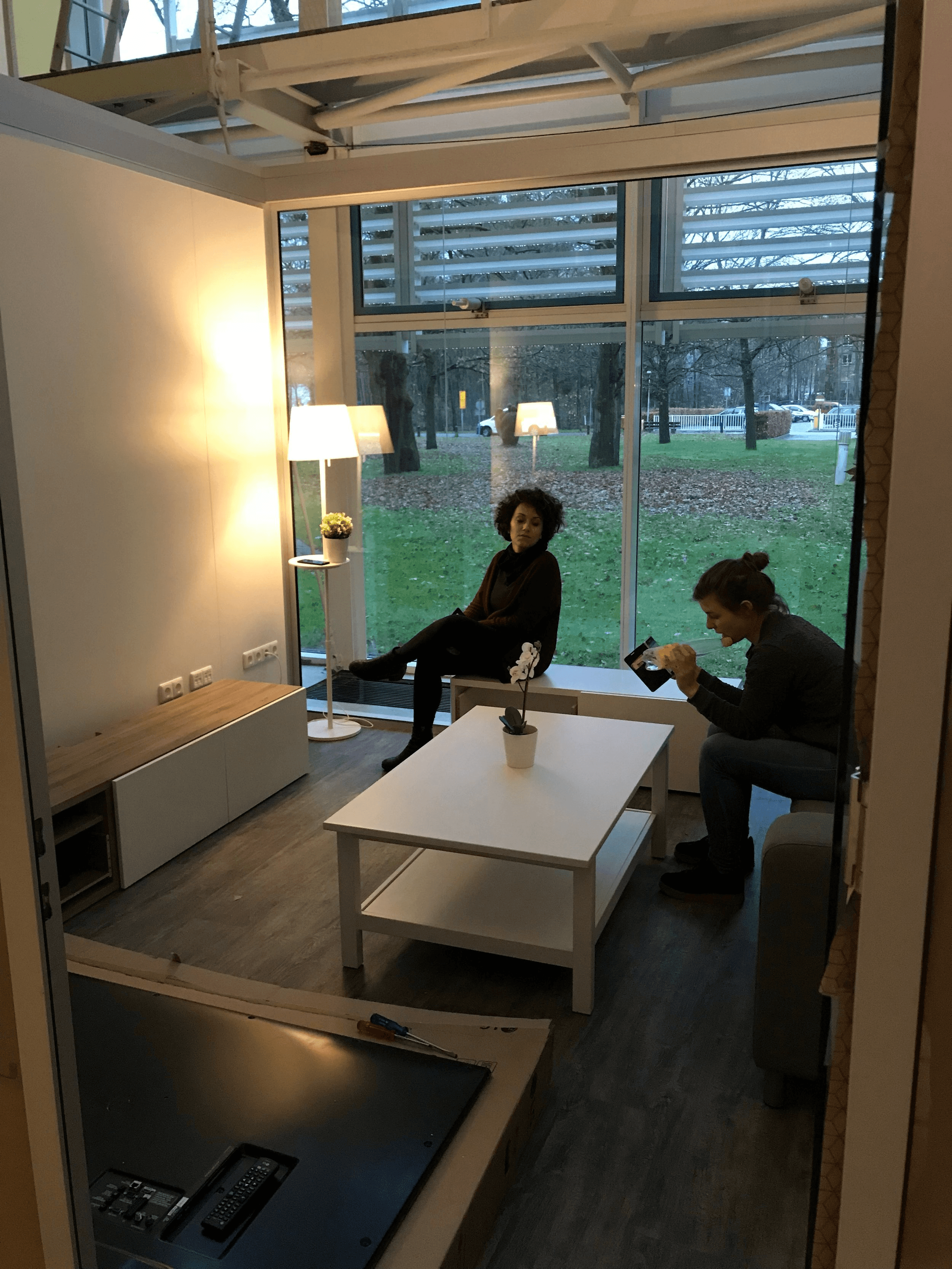 Myself, my Colleague Daniela (left), and our UX Intern Carlijn (right) constructed all the furniture for the E-Studio rooms in one day and as you can tell, we were pretty exhausted that evening.