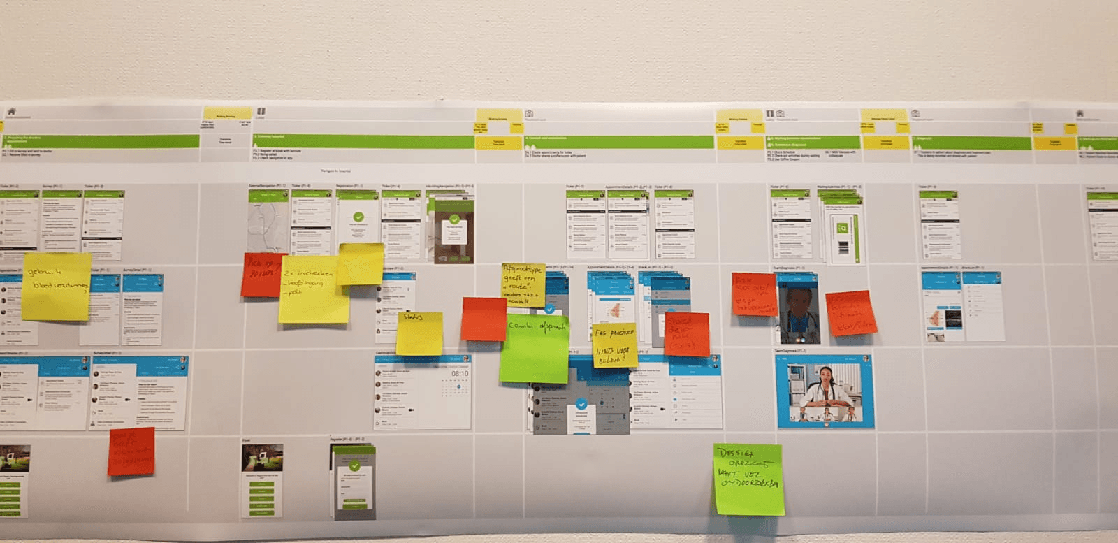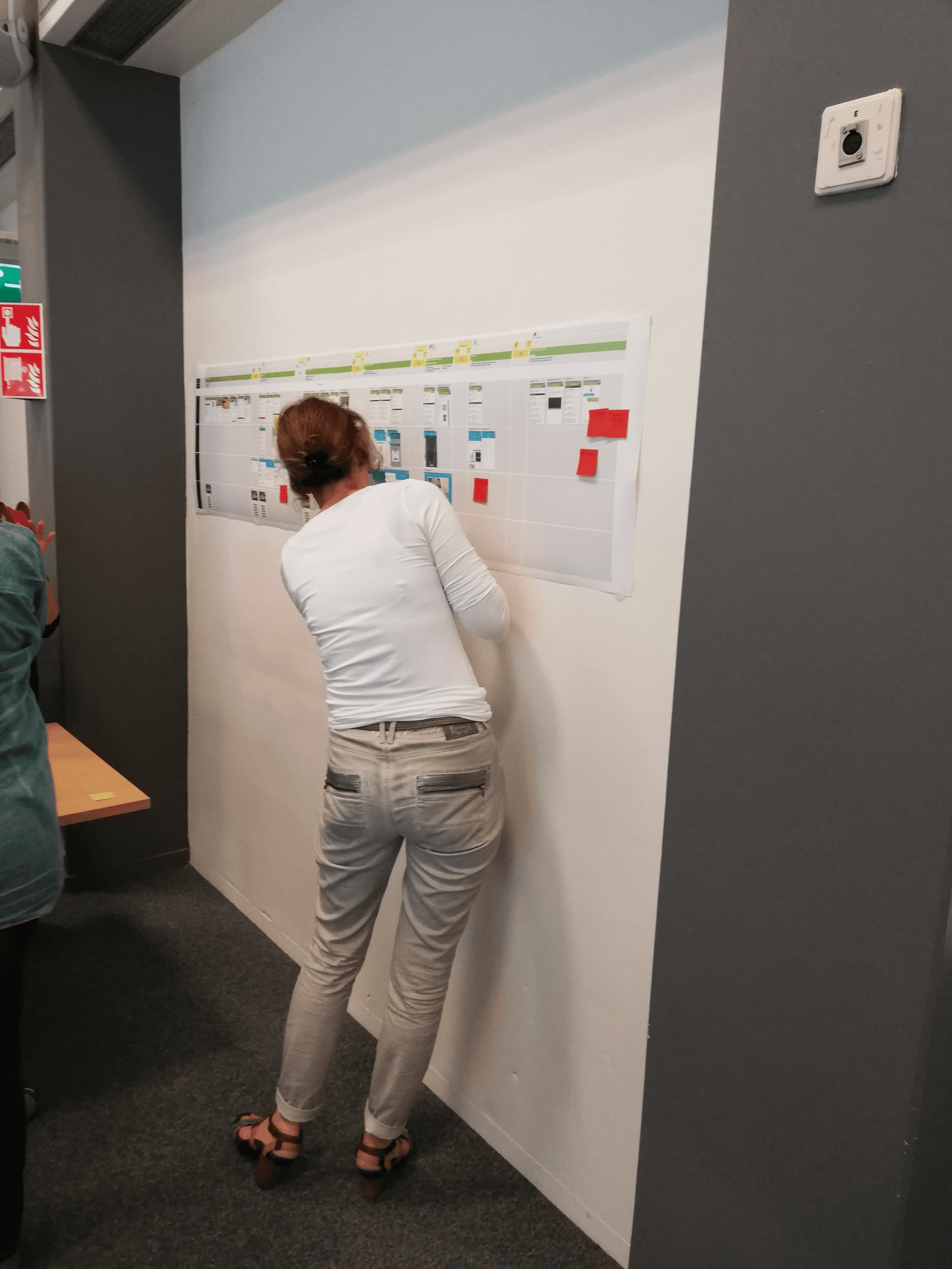 The entire journey was printed out and each group given post-it notes to highlight their ideas. These ideas were clustered and categorised into feature groups for exploration in future design.