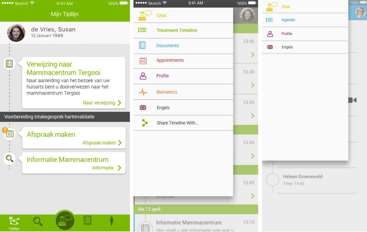 These five patients are important as the person visiting the E-Studio selects a patient of their choice and sees their journey and how the system works for them. Both doctor side and patient side change to show what features are available for this kind of care.