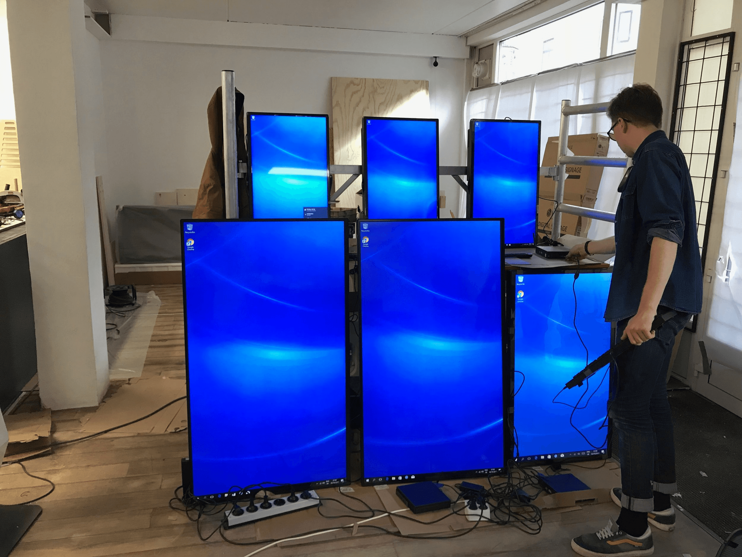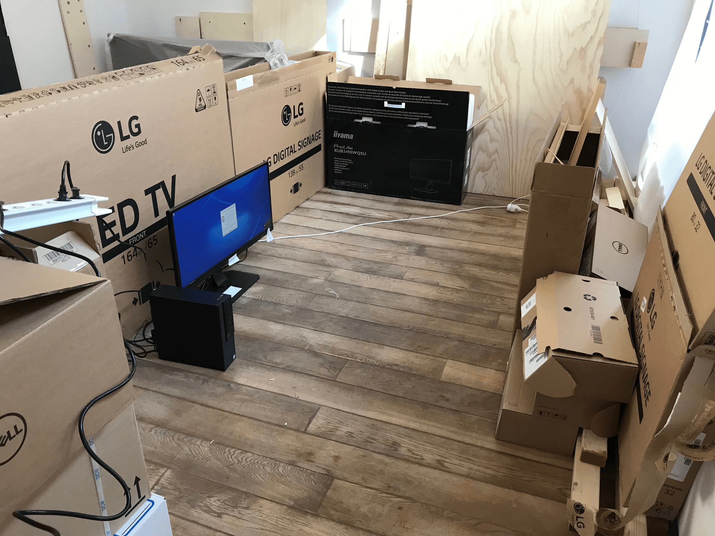 Before the E-studio room was constructed, we set up all the new screens in our new office to reflect how the tour would go.