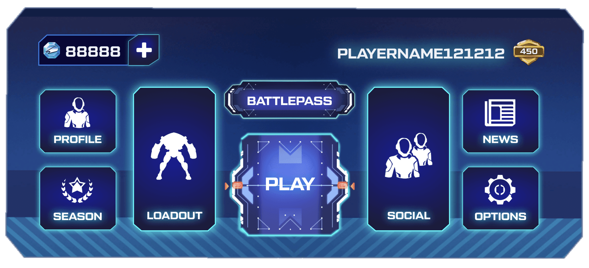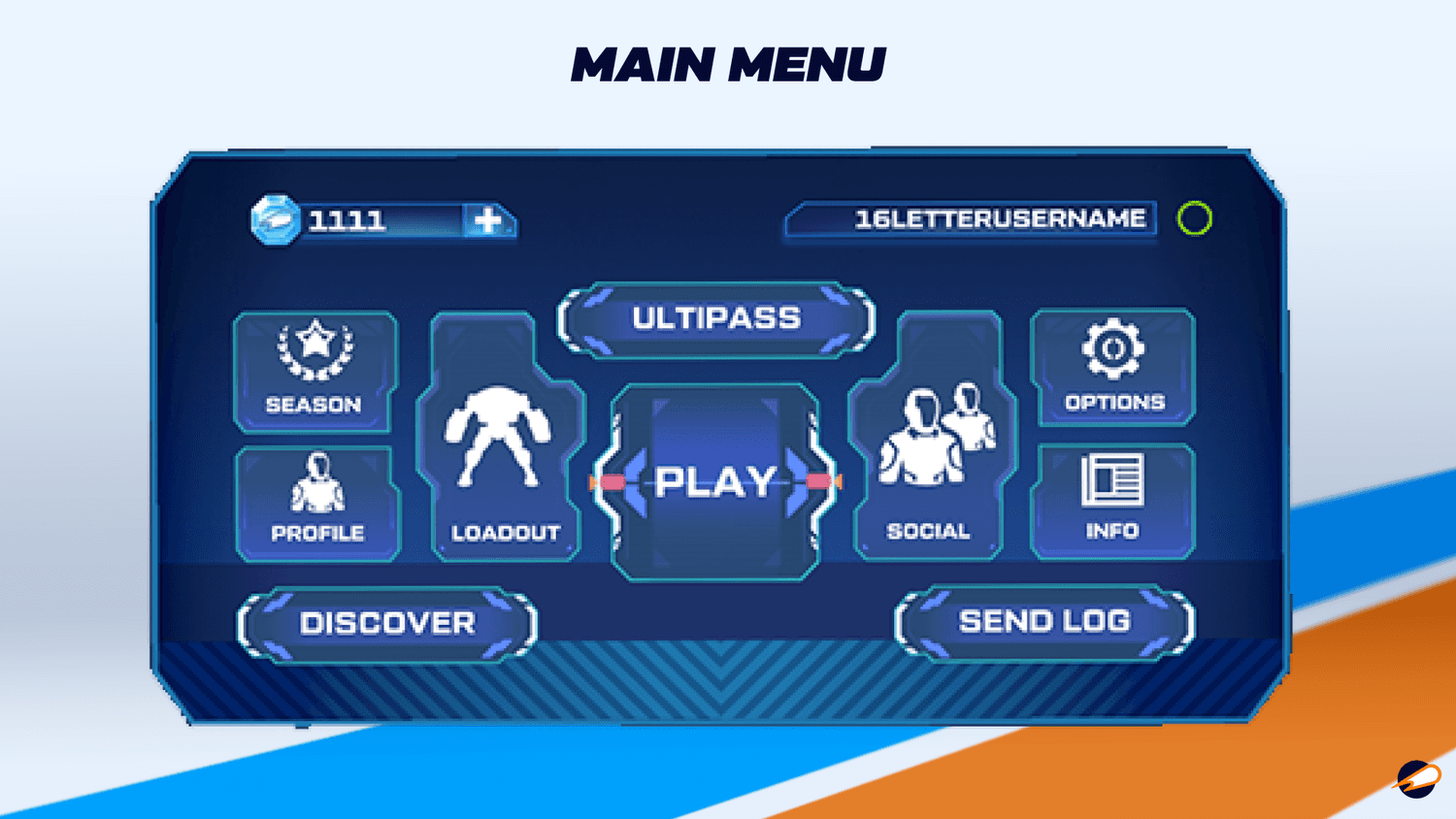 The player would also only have one character and a ranking systems with their username would be needed. Here you can see a layout with some temporary UI Assets provided by the UI Artist.