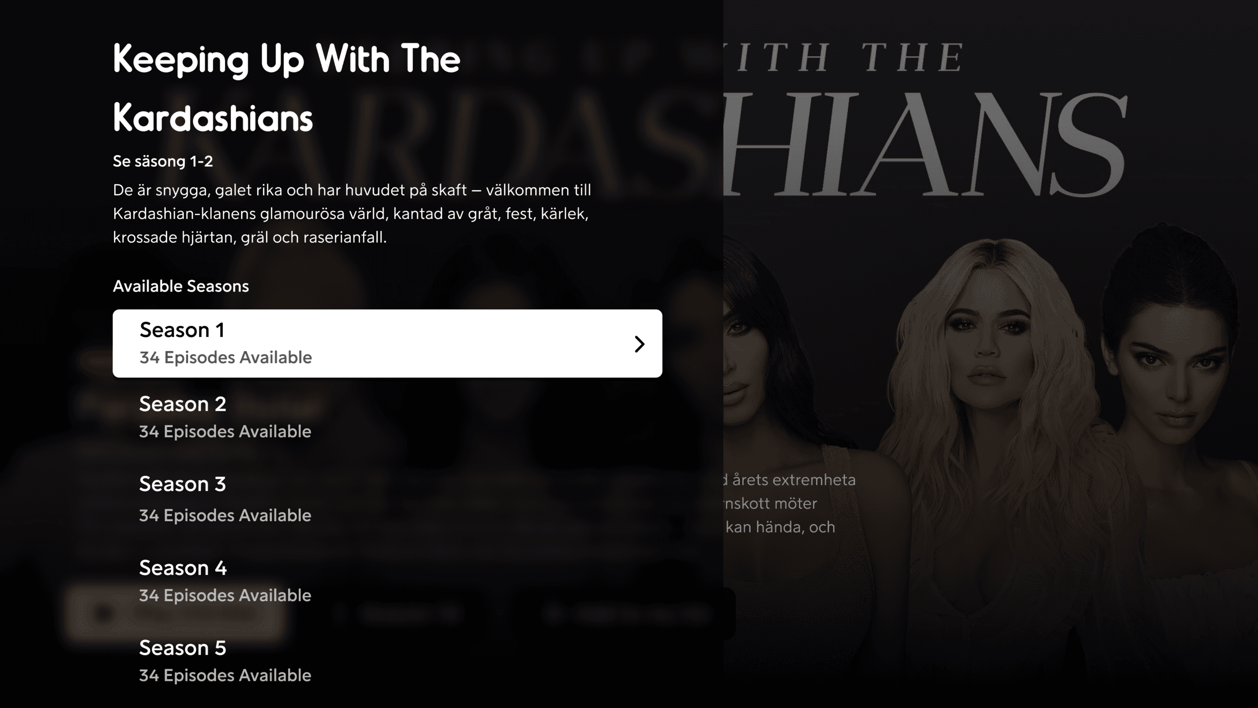 Selection of seasons wasn’t a great experience due to horizontal scrolling, and hard to grasp at a glance the available season count.