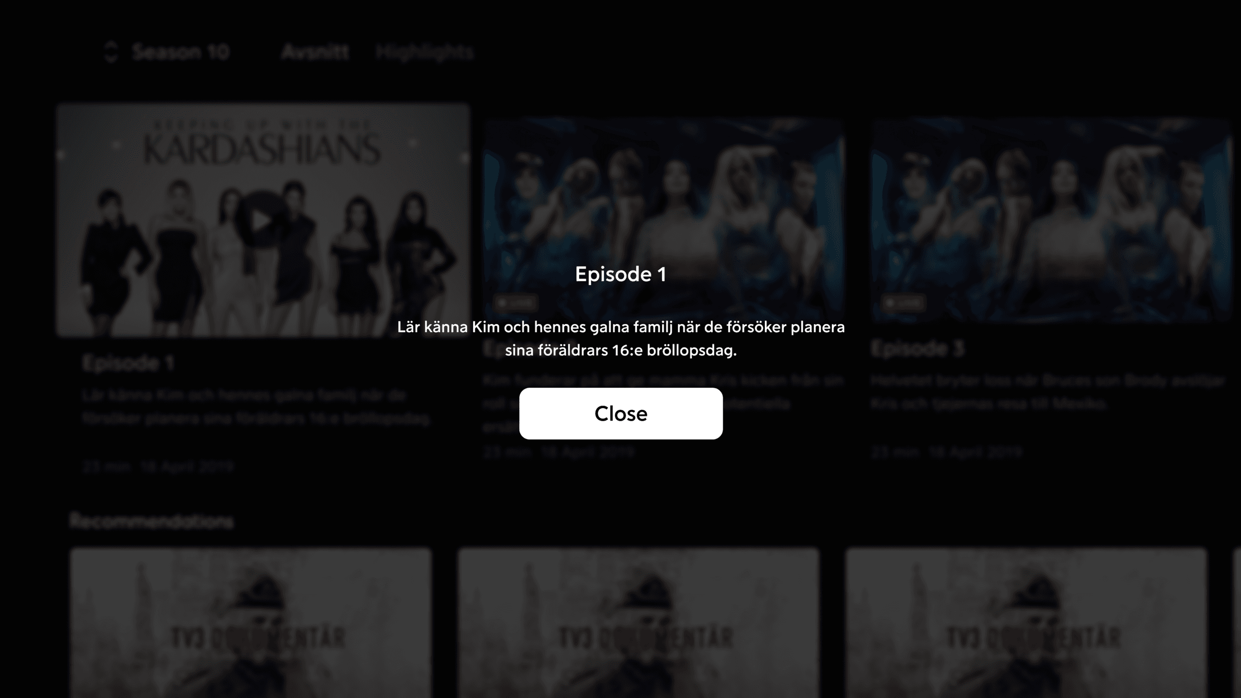 The new episode Cards are shown here. They feature the length, publish date, and description of the episode as users needed this info to determine how long they could gauge their watching time, and also use the dates for live content to see when it was published. A new feature of these cards allow the users to highlight the description section and read the episode description, never before available on the app. This would generate an overlay as seen below.