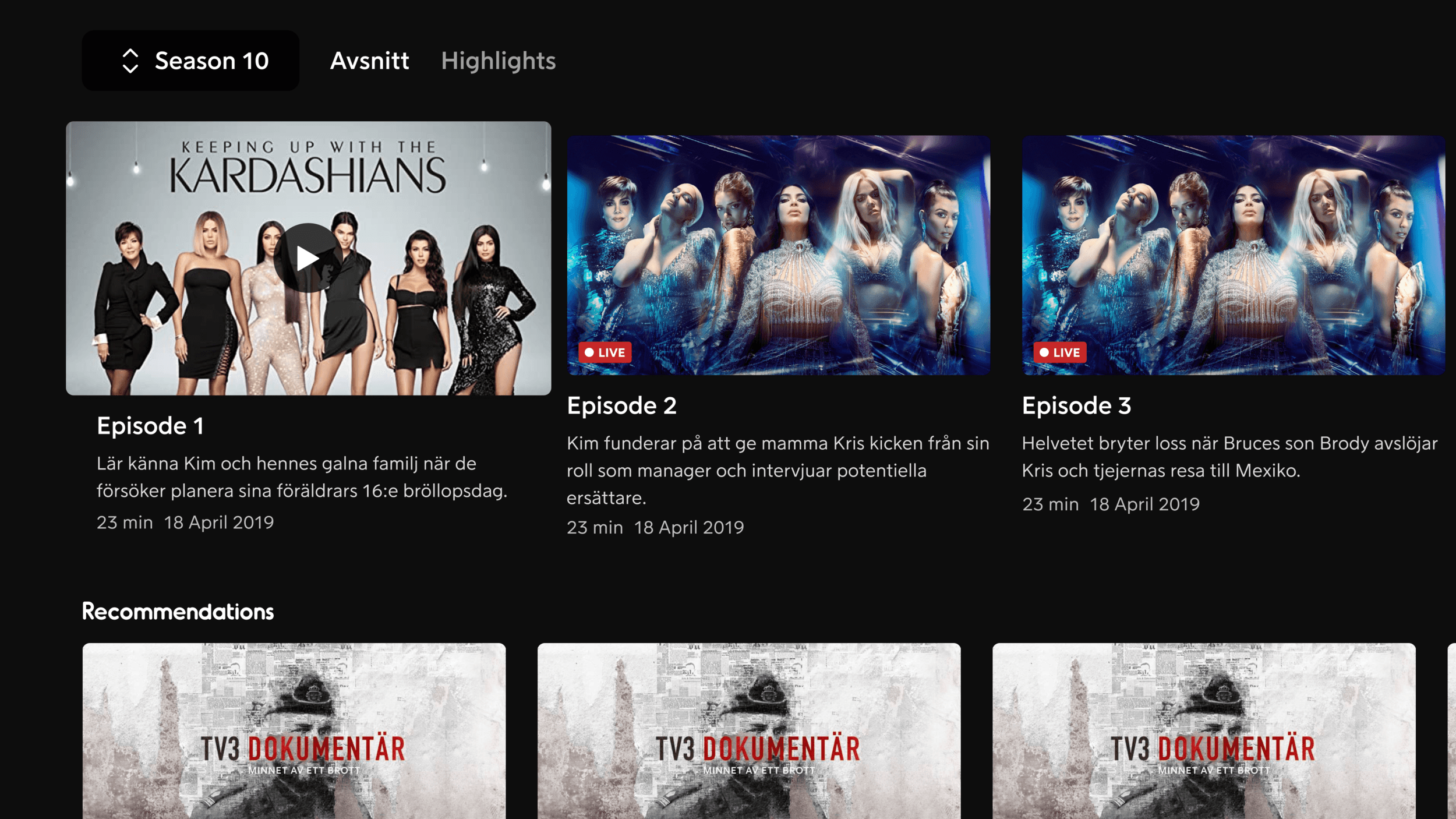 This is why the hero area has the main information about the series, and the functions that the user cant interact with. Scrolling down, they are met with the episodes section…