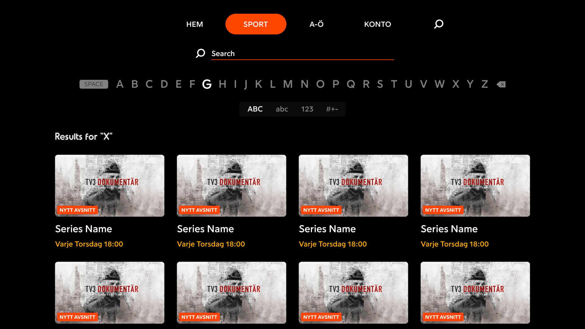 The search page has the UI alignment similar to the previous pages for the cards and grid structure, but the real upgrade is to the search algorithm! Before the search only returned results with direct matches, any misspelling and it was a blank return. Collaborating with the back end team we looked at the feedback users had given us and their expectations of what search should be able to do. We devised using the new AWS Fuzzy Search algorithms to allow misspellings still to trigger results, and implemented genre and channel searching for content. Now users can search reality and get all their reality shows populating the results!